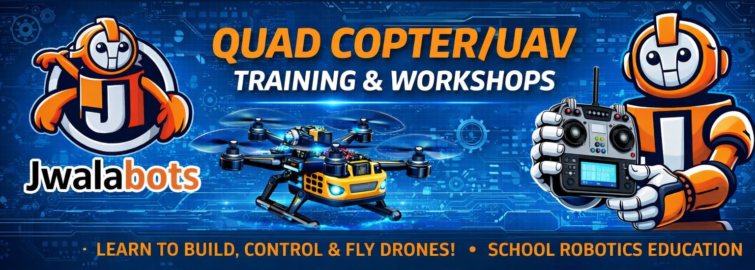Jwalabots provides hands-on training and workshops on Quad Copters and UAVs. Learn drone assembly, flight control, navigation, and real-time applications to gain practical skills in modern aerial technology.